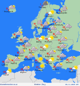 Thursday A day of showers and sunshine for Iberia. Drier in southern parts but some more cloud here. Heavy morning rain over the Balearics passes east for sunny spells, reaching Sardinia and Corsica later in the day. Notable westerlies across Iberia, stronger over the central Mediterranean islands. Dry for Italy and often sunny, some cloud west. Fair and sunny for the Balkan States, some scattered showers in Serbia and North Macedonia. Showers and sunshine for Greece and Türkiye. Some showers in the far south may be heavy. Very mild in France with heavy rain in central and southern areas, risk thundery near the coast. Strong winds will blow onto the west coast. Dry for the Low Countries but cloudy, this cloud extending into west Germany. Central Germany and eastwards across the continent will be broadly sunny and mild. Showery in the far southeast near the Black Sea, particularly over Bulgaria. Mild in Denmark and southern Sweden with light rain. A broader band of rain extends from Norway into central Sweden, some showers into northern Norway. Northern parts of Sweden and Finland will be fine with some sunshine. Patchy rain and breezy in the Baltic States, though some sunny spells here too, particularly in Lithuania.